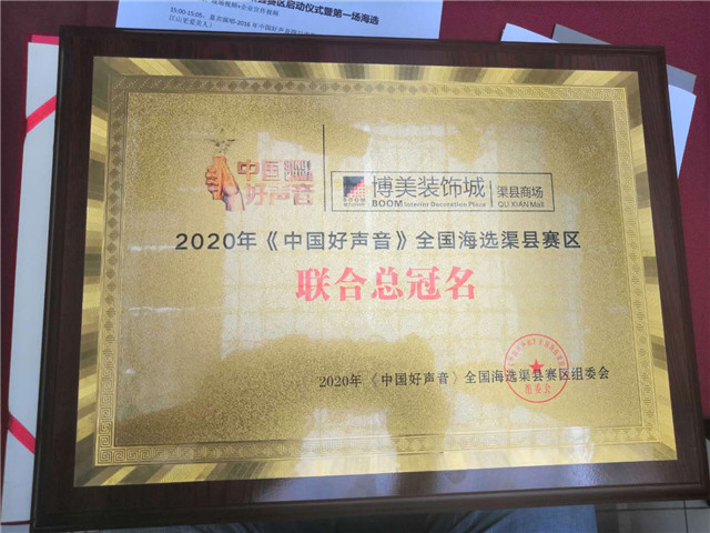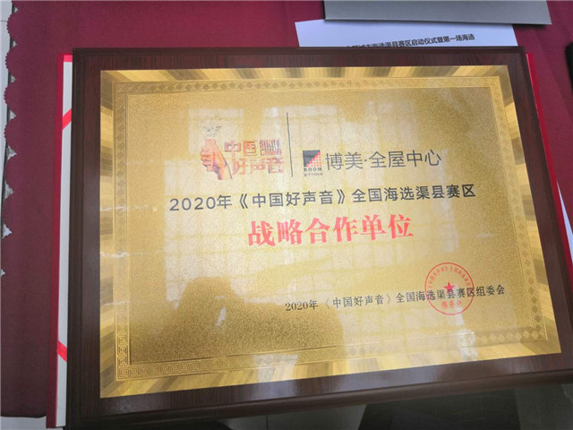2020《中国好声音》全国海选渠县赛区组委会为博美﹒全屋中心授牌《战略合作单位》。