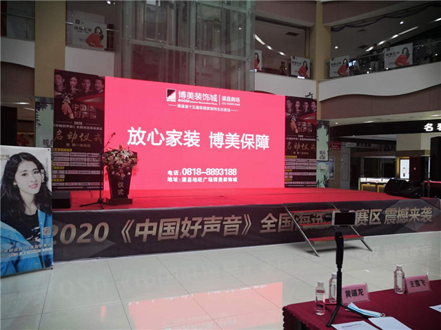2020年6月18日,由渠县博美装饰城联合总冠名的《中国好声音》全国城市海选渠县赛区正式启动,启动仪式在渠县财富中心召开,中共渠县县委宣传部副部长郑六秋、共青团渠县县委副书记肖雄、渠县文化馆副馆长熊袁梅、2020《中国好声音》全国海选渠县赛区荣誉董事、成都陆福文化传播有限公司董事长陈庆彪、博美装饰城渠县商场经理黄端龙、渠县财富中心负责人蒲建霏以及众多战略伙伴共同出席了启动仪式。