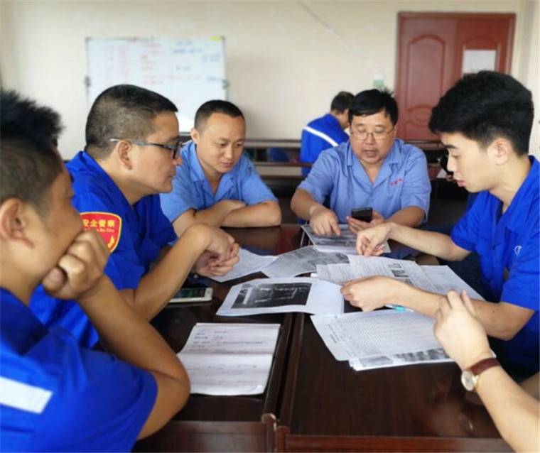 薛渝川(右一)针对供应商质量问题整改,和同事进行会议分析