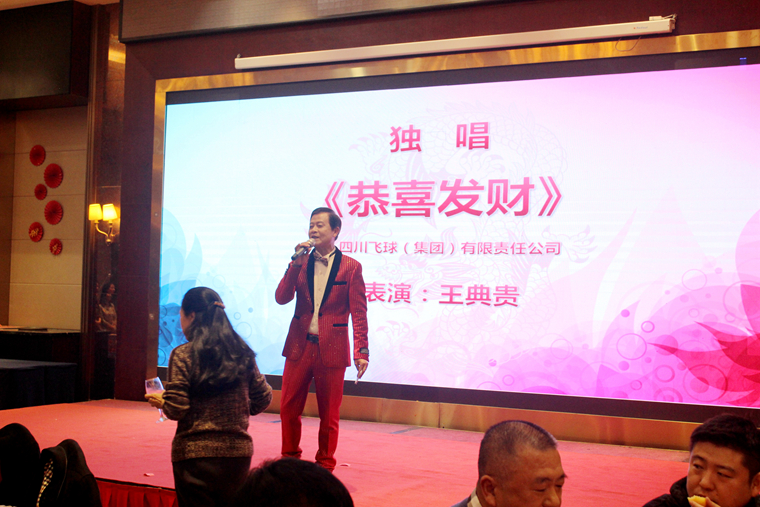 中汽成配选送的独唱《奔跑》和《无惧》,四川飞球选送的说唱曲艺《三句半》以及成都成保选送的朗诵《话说成保》等节目都以原创的内容,艺术的方式来表达自己所在企业的奋斗精神和创新业绩。在整个表演中,台上台下一片共情共荣,更是赢得观众们共鸣的喝彩。最后以本节目主持人、飞球集团王典贵带来的《恭喜发财》为表演收了一个欢快的豹尾。