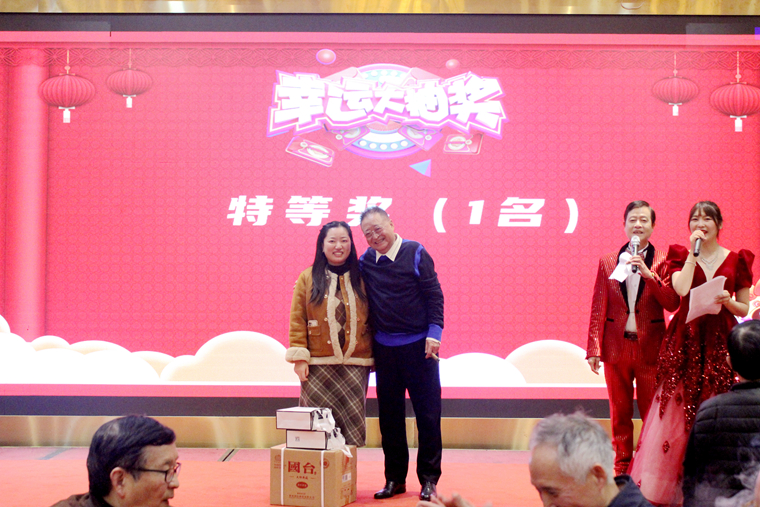 晚会必备的抽奖环节也是大家最期待的时刻,同时也将整个晚会氛围推向了高潮。本次抽奖共设置了23个名额,一轮接一轮的抽奖环节,奖品也陆续被被幸运儿抱走,抽奖现场欢呼声连连,热闹非凡。