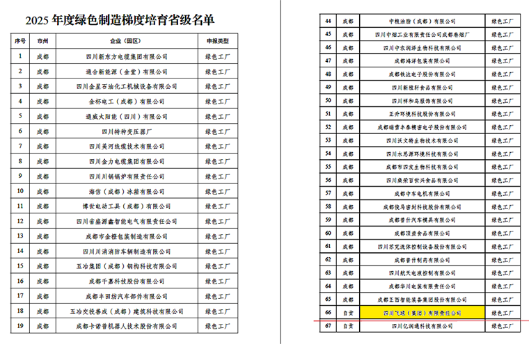 图 | 四川飞球荣获2025年度绿色制造梯度培育省级名单