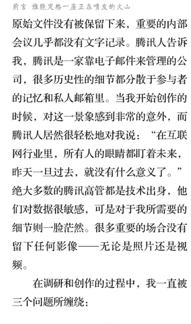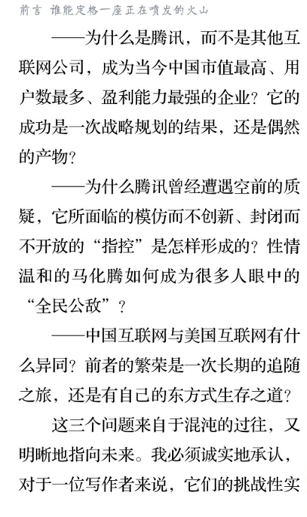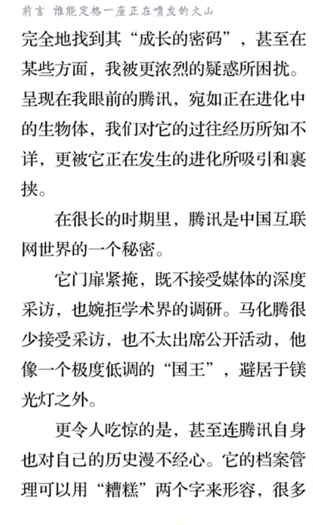 深读之后发现,其实全书真正的核心在于透过腾讯可以观察到的中国企业逻辑,其中很多基于国情而诞生的特殊能力,过去或受诟病或被追捧,而本书作者可以以更加客观的姿态对其进行分析,这无疑是一种当代创业者和企业家应当学习的姿态和能力。