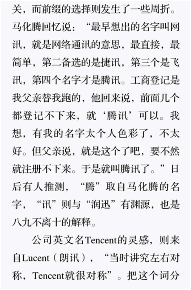深读之后发现,其实全书真正的核心在于透过腾讯可以观察到的中国企业逻辑,其中很多基于国情而诞生的特殊能力,过去或受诟病或被追捧,而本书作者可以以更加客观的姿态对其进行分析,这无疑是一种当代创业者和企业家应当学习的姿态和能力。