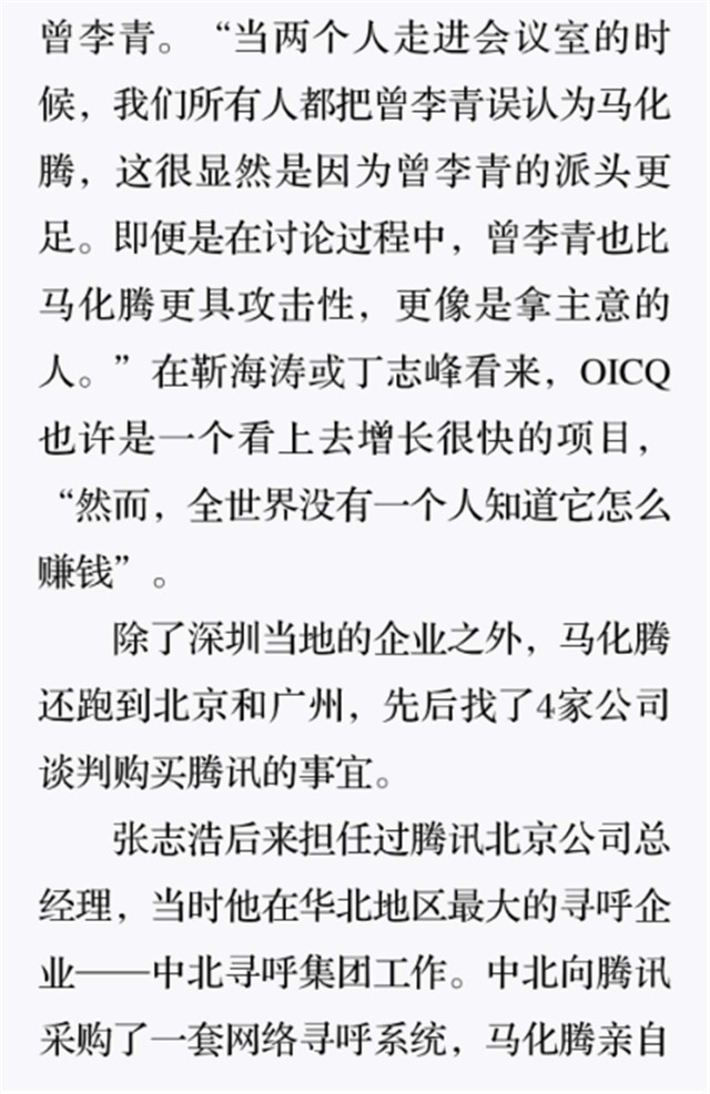 深读之后发现,其实全书真正的核心在于透过腾讯可以观察到的中国企业逻辑,其中很多基于国情而诞生的特殊能力,过去或受诟病或被追捧,而本书作者可以以更加客观的姿态对其进行分析,这无疑是一种当代创业者和企业家应当学习的姿态和能力。