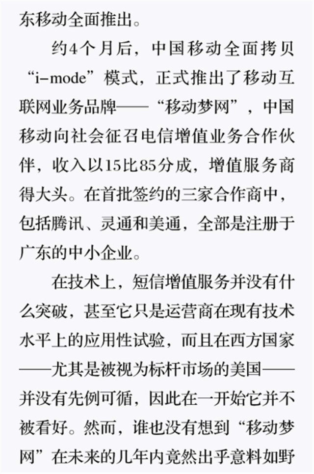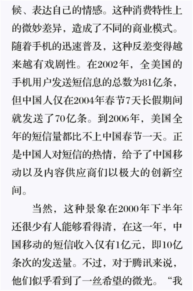 深读之后发现,其实全书真正的核心在于透过腾讯可以观察到的中国企业逻辑,其中很多基于国情而诞生的特殊能力,过去或受诟病或被追捧,而本书作者可以以更加客观的姿态对其进行分析,这无疑是一种当代创业者和企业家应当学习的姿态和能力。