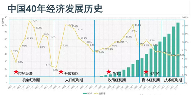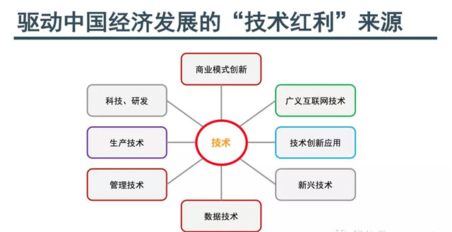中国经济过去四十年的增长可以说绝大多数的驱动要素都是传统经济留给我们的空间,因为“计划经济”和“闭关锁国”带来的“开放势能”,这四十年是我们三代人的红利,包括60后、70后、80后。而接下来的90后将面临新的挑战,也有新的机遇,这个机遇就是我们过去在“技术”上的“欠债”带来的“技术红利势能”。
