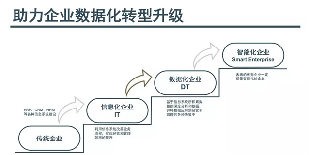 一、传统信息技术的推广已经近20年了,多数发展起来的中国企业基本都有一个或者多个信息系统,包括ERP,CRM,HRM,OA,财务管理系统等等。这些信息系统为企业沉淀了大量的记录经营和管理活动的数据,只是这些数据从来没有认真被分析过和使用过,这是一个未被挖掘的富矿;