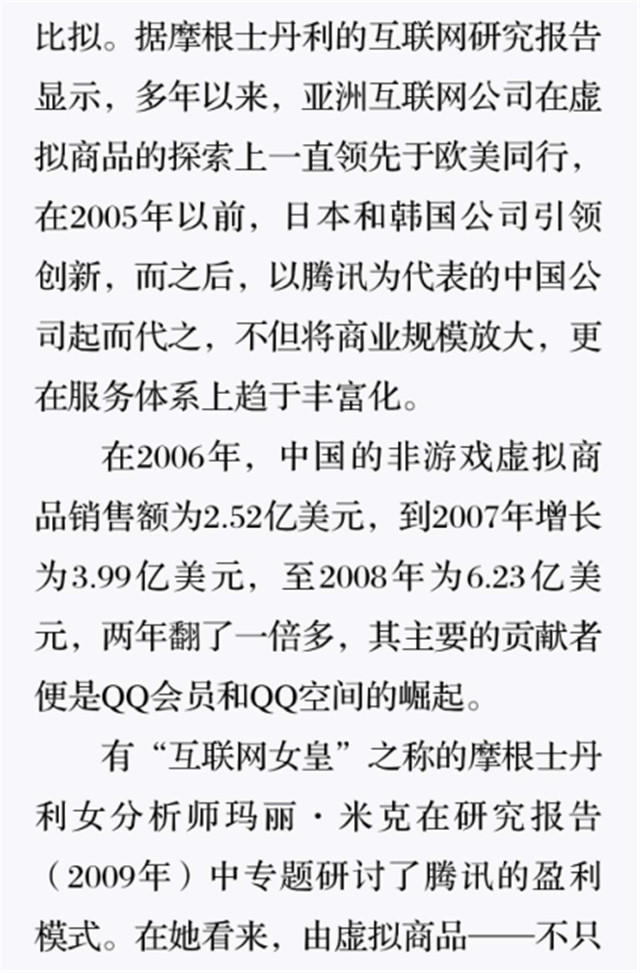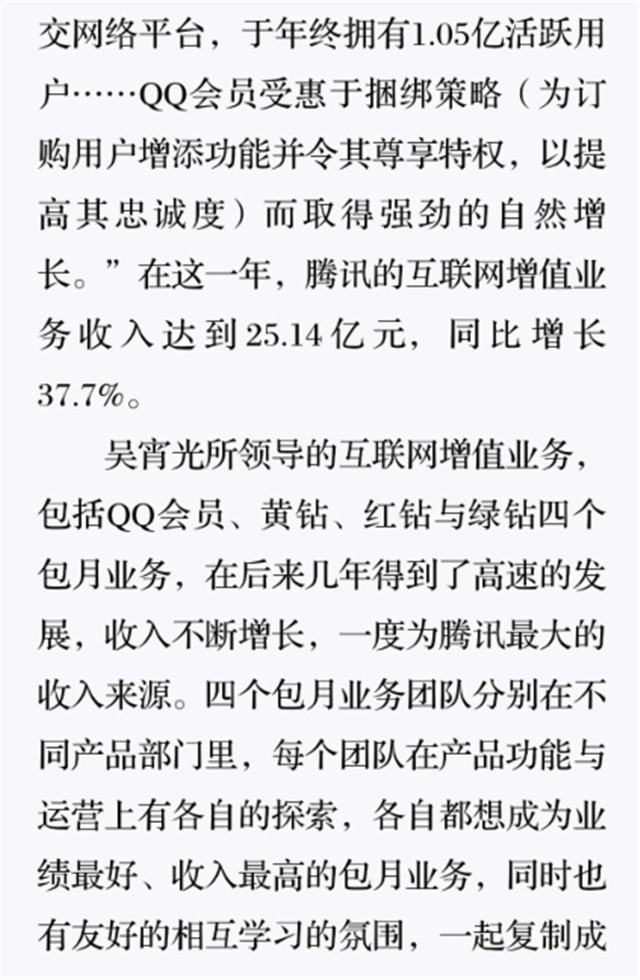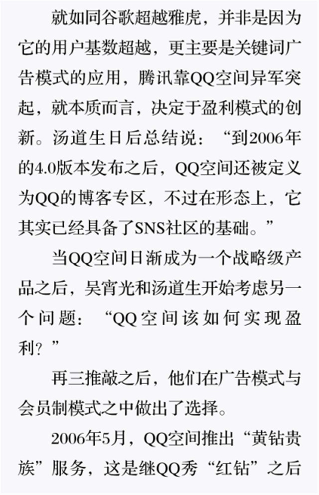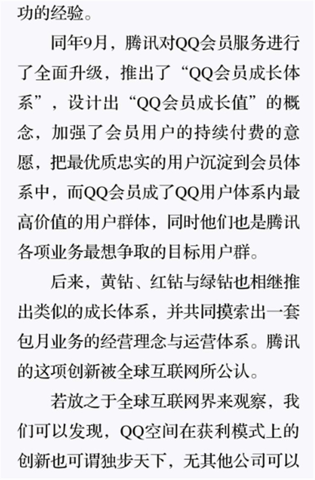 深读之后发现,其实全书真正的核心在于透过腾讯可以观察到的中国企业逻辑,其中很多基于国情而诞生的特殊能力,过去或受诟病或被追捧,而本书作者可以以更加客观的姿态对其进行分析,这无疑是一种当代创业者和企业家应当学习的姿态和能力。