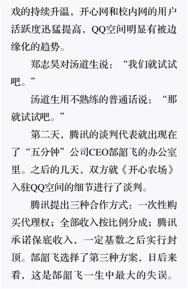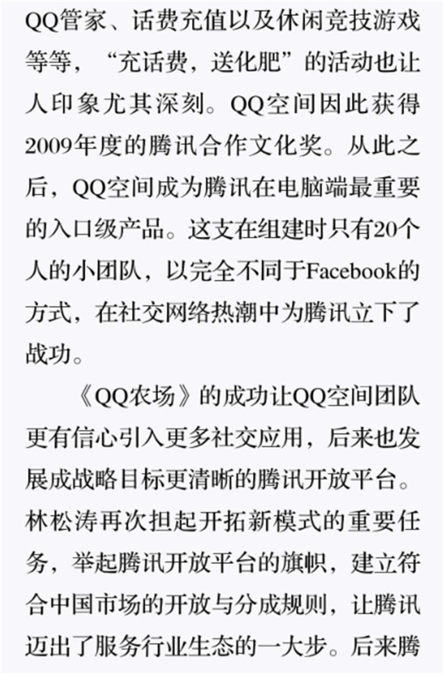 深读之后发现,其实全书真正的核心在于透过腾讯可以观察到的中国企业逻辑,其中很多基于国情而诞生的特殊能力,过去或受诟病或被追捧,而本书作者可以以更加客观的姿态对其进行分析,这无疑是一种当代创业者和企业家应当学习的姿态和能力。