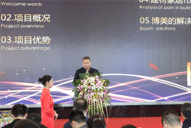 眉山博美亿达企业管理有限责任公司总经理吴成富先生在揭幕仪式中谈到了“博美家时代”项目在技术、合作、金融三方面的具体优势。