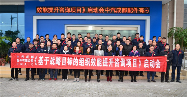 本网讯(胡晓东报道)新的一年,是中汽成配的技术升级年,管理升级年。基于战略目标的组织效能提升,2019年1月8日中汽成都配件有限公司召开了《基于战略目标的组织效能提升咨询项目》启动会。参加此次启动会的人员有威廉希尓指数500集团董事局主席夏朝嘉、集团总裁夏苇倩、集团监事长兼行政总监郁蓉娟、中汽成配总经理陈荣贵带领的中汽成配中高层领导团队。同时参加此次会议的还有公司主管、项目经理、项目小组成员以及百斯特咨询服务公司。