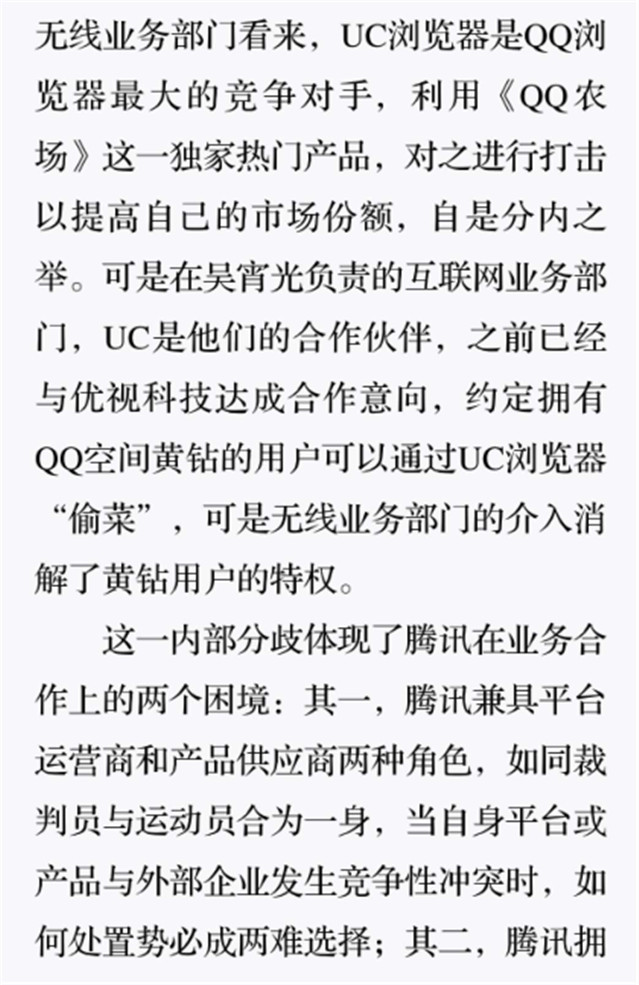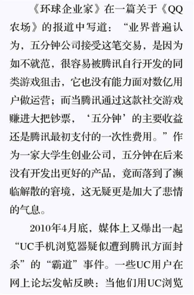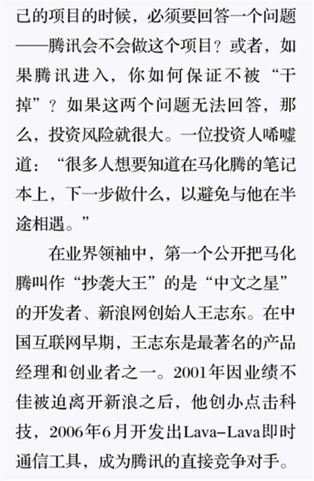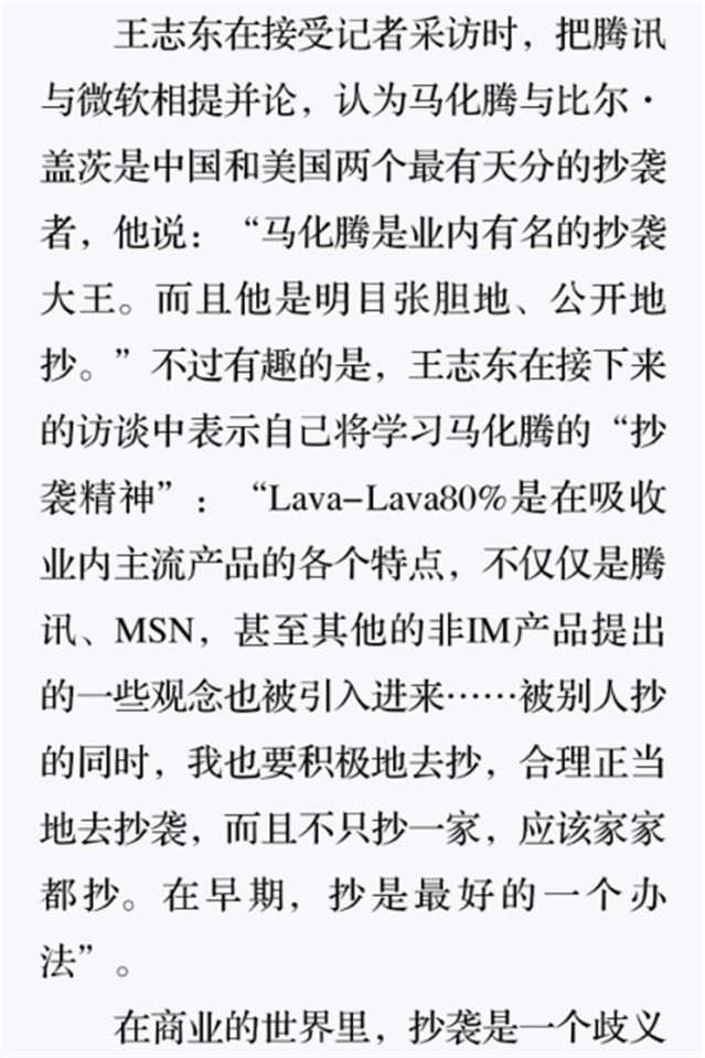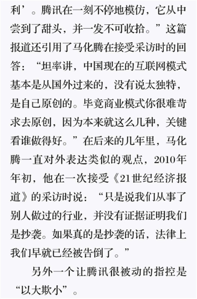 深读之后发现,其实全书真正的核心在于透过腾讯可以观察到的中国企业逻辑,其中很多基于国情而诞生的特殊能力,过去或受诟病或被追捧,而本书作者可以以更加客观的姿态对其进行分析,这无疑是一种当代创业者和企业家应当学习的姿态和能力。