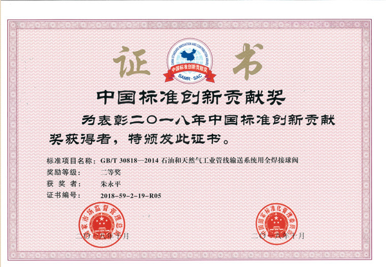 GB/T 30818-2014《石油和天然气工业管线输送系统用全焊接球阀》标准的获奖只是一种结果,朱永平自大学毕业参加工作至今,默默实践着科技工作者“只争第一”的人生追求,名至实归的头衔也纷至沓来,教授级高工、中国阀协科技专家委员会委员、全国阀门标准化技术委员会委员、中国机械工程学会流体分会阀门与管道专业委员会委员、四川省科技进步奖评审专家库成员、自贡市“十大杰出人才”、“ 十大创新人物“等,因自贡市双千计划创新团队带头人,被授予盐都人才绿卡。