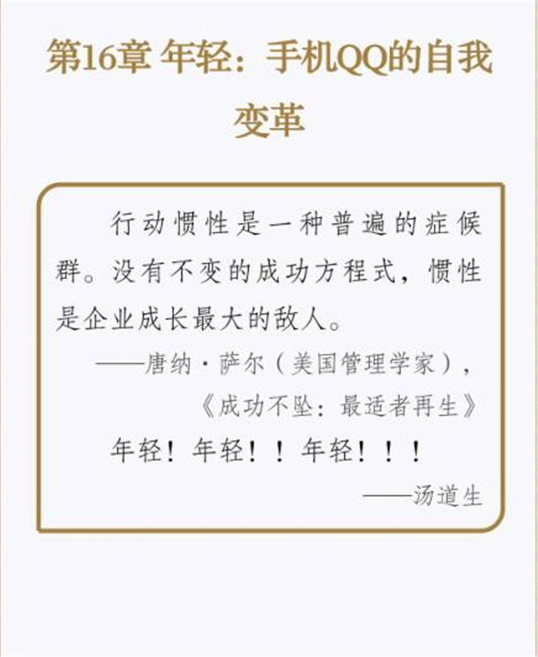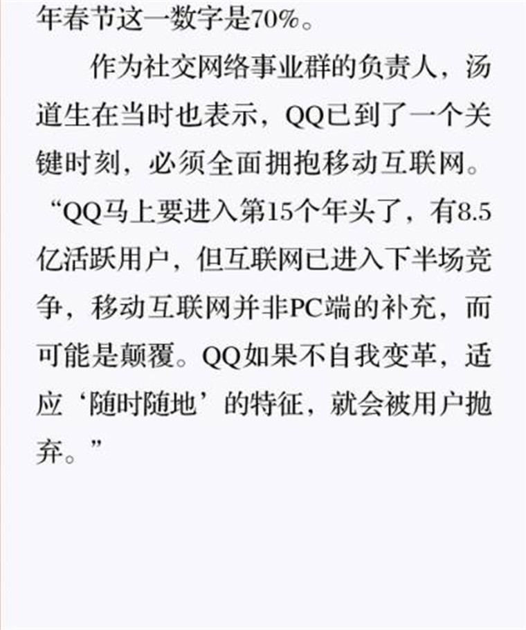 深读之后发现,其实全书真正的核心在于透过腾讯可以观察到的中国企业逻辑,其中很多基于国情而诞生的特殊能力,过去或受诟病或被追捧,而本书作者可以以更加客观的姿态对其进行分析,这无疑是一种当代创业者和企业家应当学习的姿态和能力。