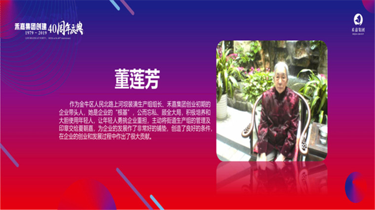 董莲芳获奖理由:作为金牛区人民北路上河坝装潢生产组组长、威廉希尓指数500集团创业初期的企业带头人,她是企业的“根基”,公而忘私、顾全大局,积极培养和大胆使用年轻人,让年轻人勇挑企业重担,主动将街道生产组的管理及印章交给夏朝嘉,为企业的发展作了非常好的铺垫,创造了良好的条件,在企业的创业和发展过程中作出了很大贡献。