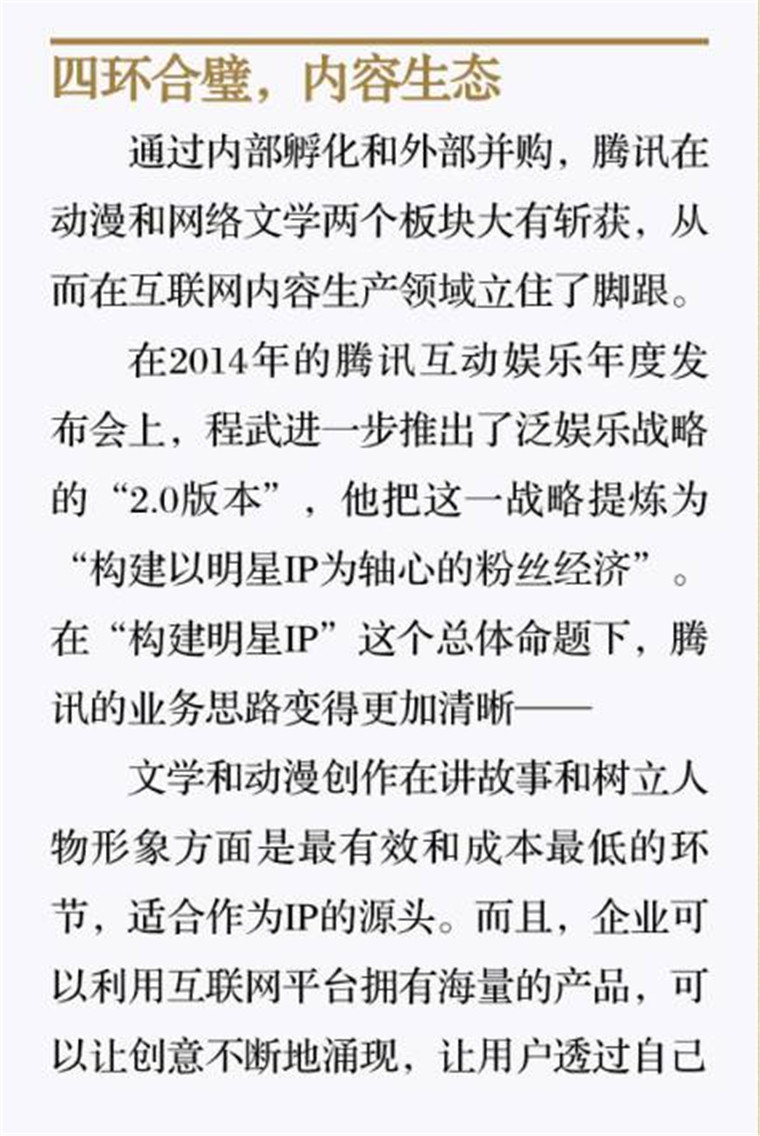 深读之后发现,其实全书真正的核心在于透过腾讯可以观察到的中国企业逻辑,其中很多基于国情而诞生的特殊能力,过去或受诟病或被追捧,而本书作者可以以更加客观的姿态对其进行分析,这无疑是一种当代创业者和企业家应当学习的姿态和能力。