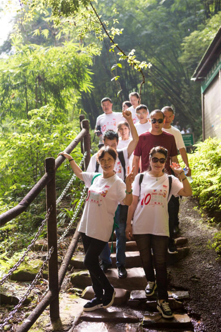 一个半小时之后团队抵达了目的地-邛崃的川西竹海,满山竹林,充满了原始的气息。团建第一站就是爬山,大家风雨同舟,协力合作,努力登上最 高处,一路上磐石险路,大家相互搀扶,正如工作中的扶持前进。