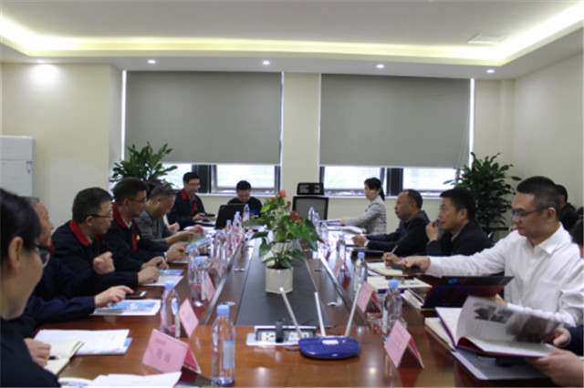 随后,考察团来到公司会议室,双方围绕机械加工、数字经济产业发展等话题展开交流。
